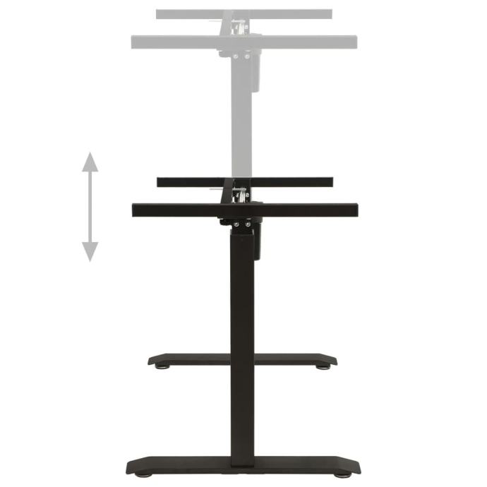 Ovaj okvir za radni stol, napravljen od ugljičnog čelika obloženog prahom, stabilan je. Ima prilagodljivu širinu od 102 do 160 cm i visinu od 71 do 113 cm kako bi zadovoljio vaše posebne potrebe. Ovaj okvir ima upravljačku ploču s gumbima za gore/dolje radi brzog i jednostavnog podešavanja. Može se upotrebljavati s vašom radnom površinom kako bi savršeno odgovarao vašem radnom prostoru. Okvir je prikladan za stol širine 120 – 180 cm i dubine 60 – 80 cm.