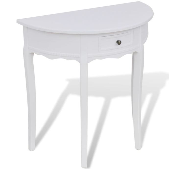 Ovaj izdržljivi konzolni stol je izrađen od visokokvalitetnog MDF-a i borovog drva i ima bijelu obojanu završnicu.