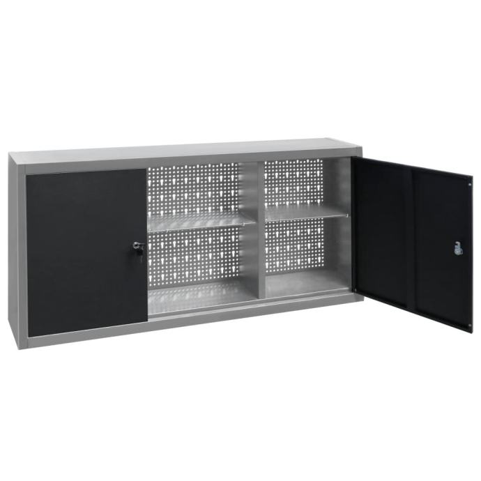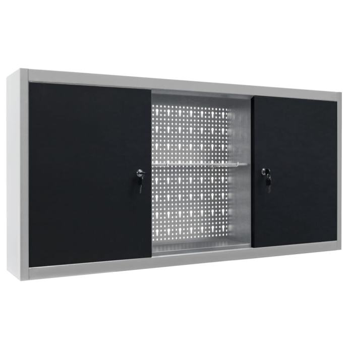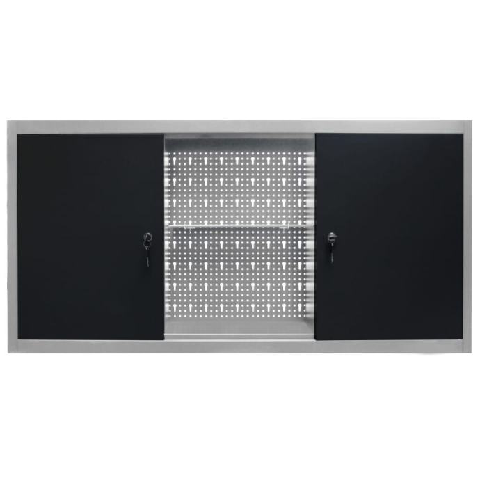 Ova jedinica za pohranu alata sadrži tri police podesive visine i perforiranu ploču s rupama Euro koje se mogu upotrebljavati za vješanje različitih vrsta alata, kao što su ključevi, kliješta, čekići itd. Opremljen dvojim vratima koja se mogu zaključati (uključena 2 ključa za oba vrata), ormarić za alat pruža dodatnu sigurnost. Napravljen je od metala s izuzetno snažnim premazom otpornim na ogrebotine, što ga čini izdržljivim i jednostavnim za čišćenje. Ovaj proizvod potrebno je sastaviti.
