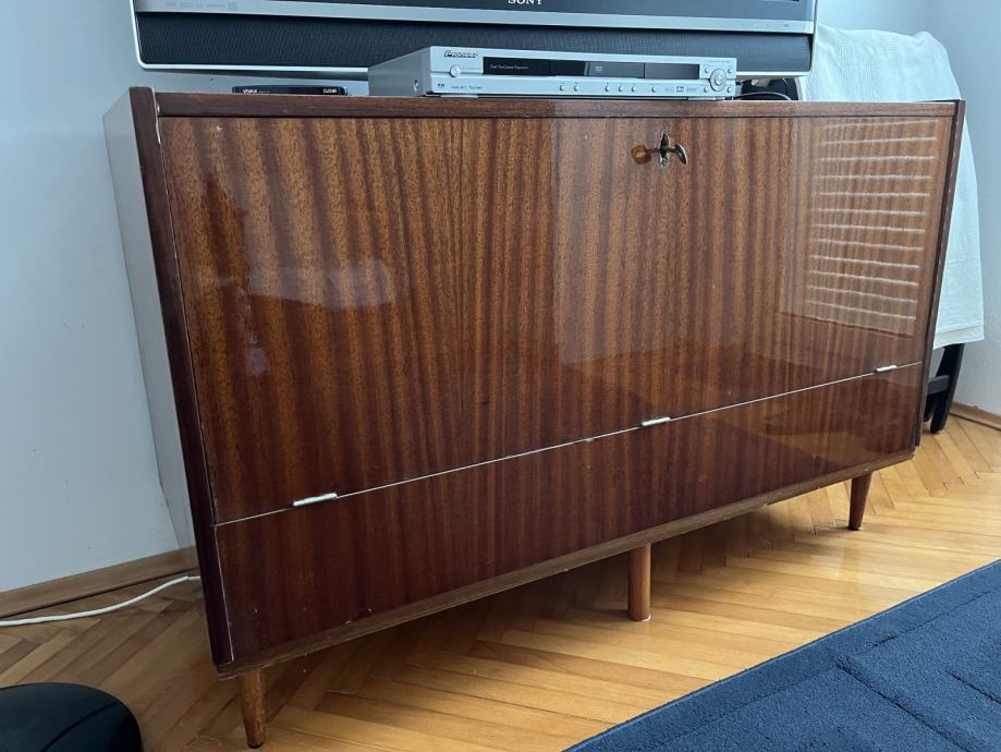 Sav furnirani namještaj u odlično očuvanom stanju, a fotelje je potrebno tapecirati.