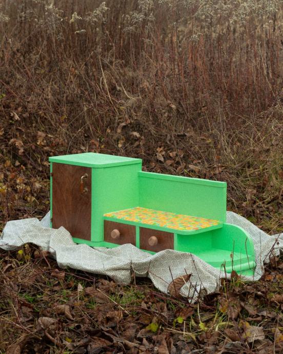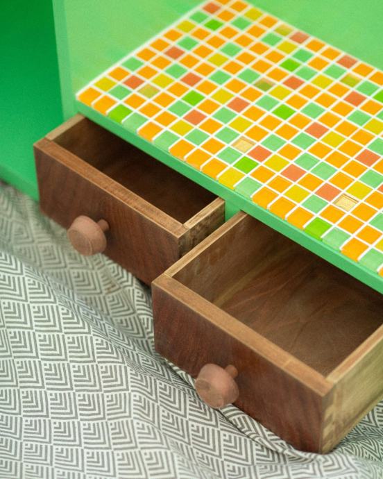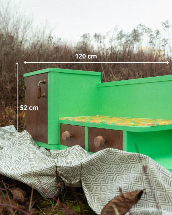 Prodajem restauriranu komodu, može služiti npr. za odlaganje sobnih biljaka i sl. Preuzimanje moguće na Prečkom u Zagrebu, Varaždin ili Čakovec. U novom stanju nekorištena, ukrašena mozaik pločicama.