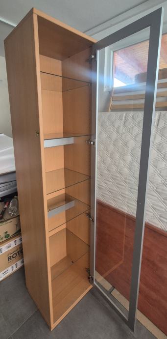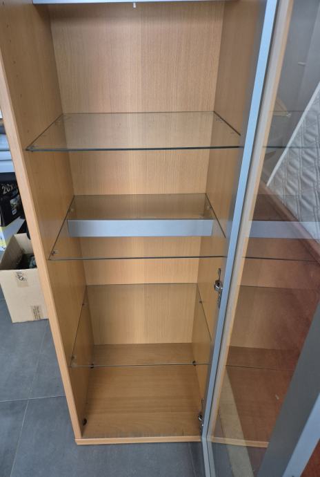 Prodajem drvenu vitrinu sa staklenim vratima i policama. Ima rasvjetu na 2 nivoa sa malim običnim žaruljama.
