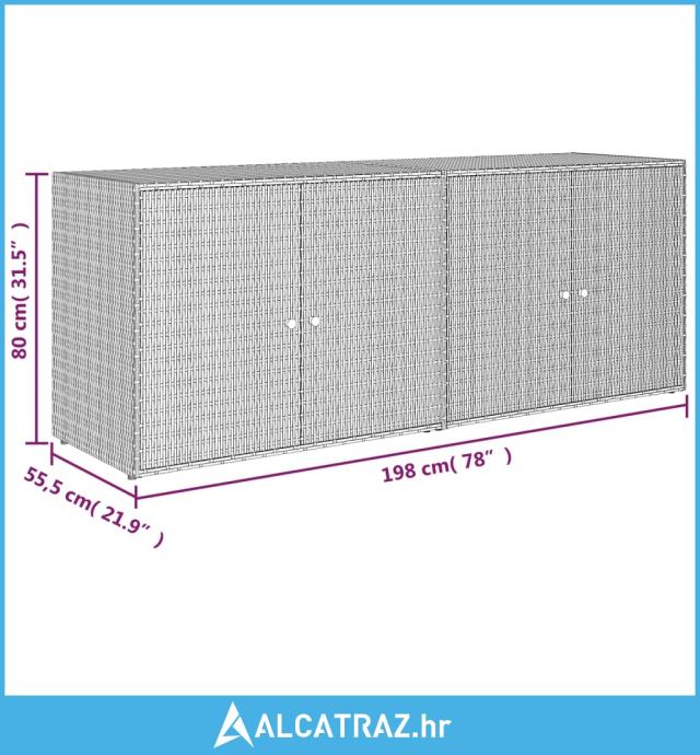 Vrtni ormarić za pohranu crni 198 x 55,5 x 80 cm od poliratana - NOVO