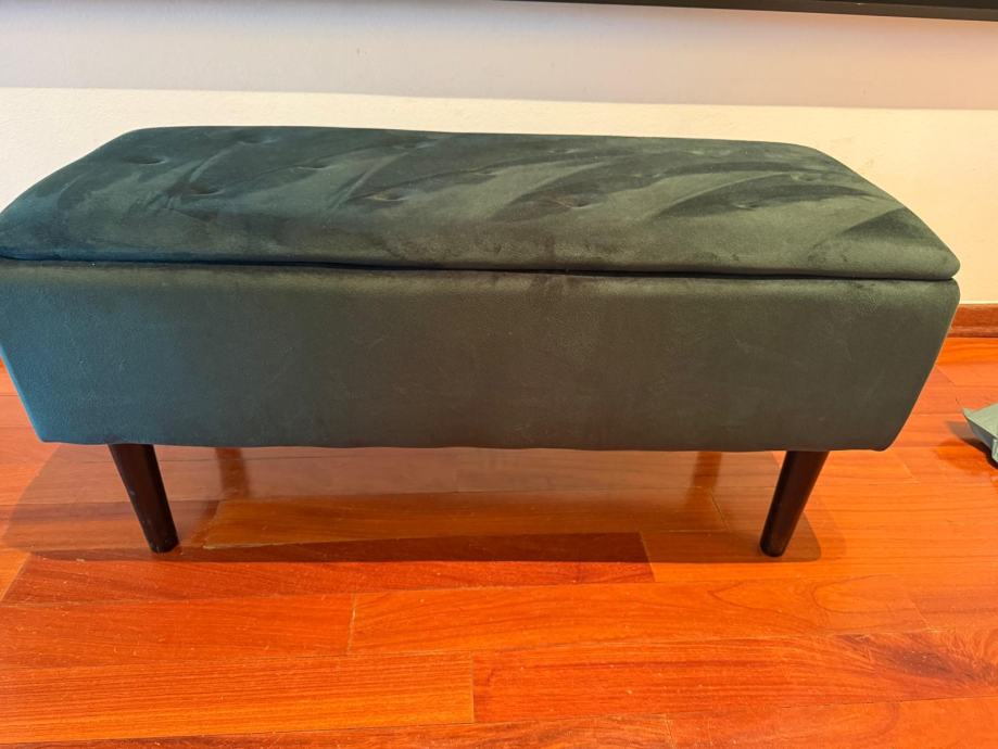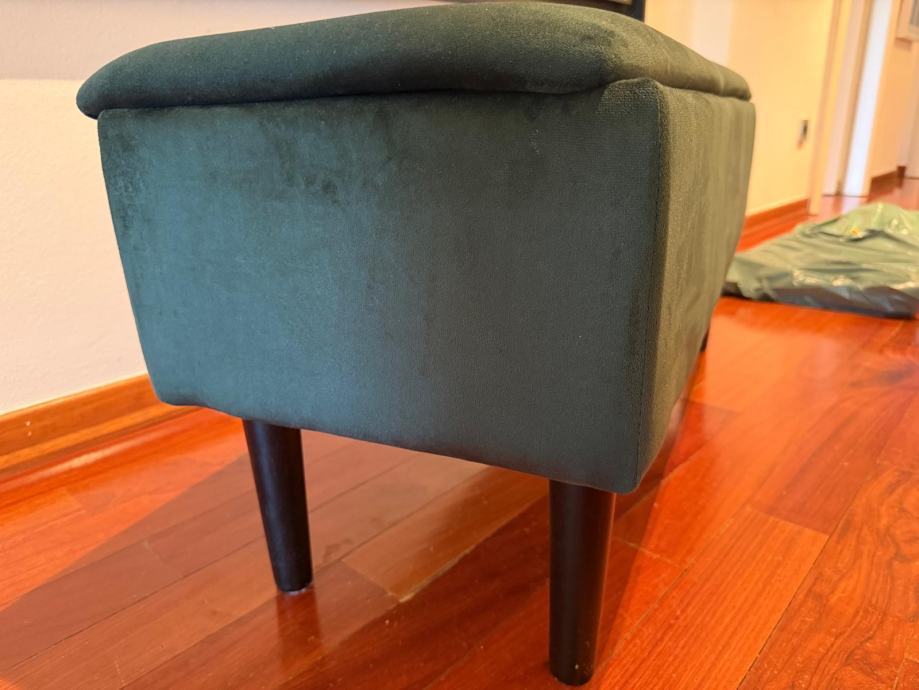 Zeleni tabure, velike nosivosti. Idealno za predsoblje, s prostorom za pohranu. JYSK, plaćen 110 eura, dajemo za 60 eura.