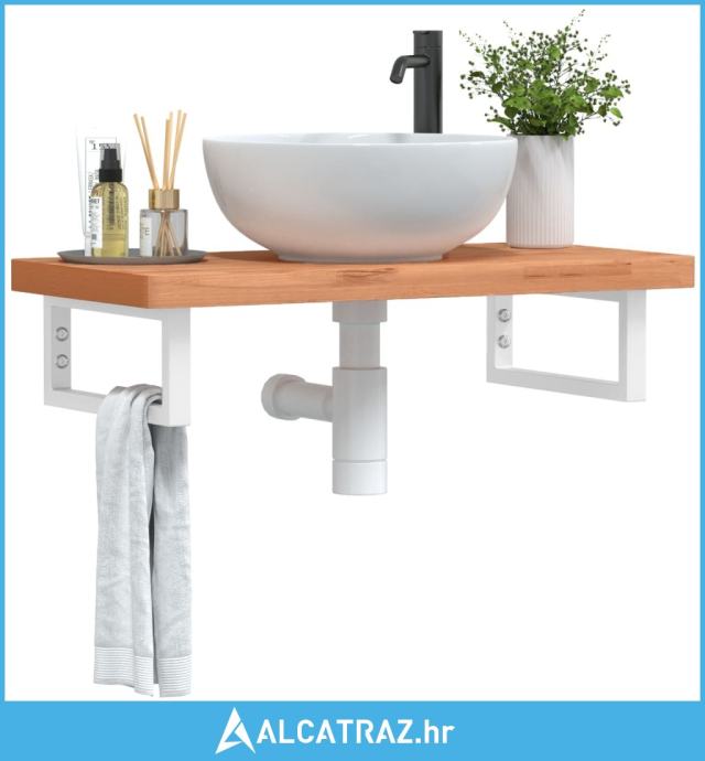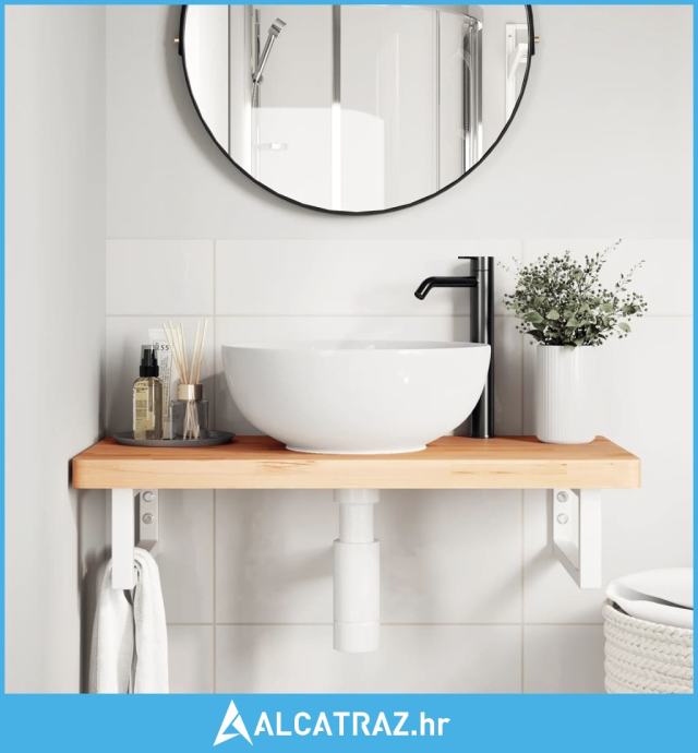 - Čvrsta i dugotrajna: Ova polica za umivaonik kombinirana je s čeličnom strukturom i površinom od masivne bukovine, što je čini čvrstom, stabilnom i dugotrajnom.