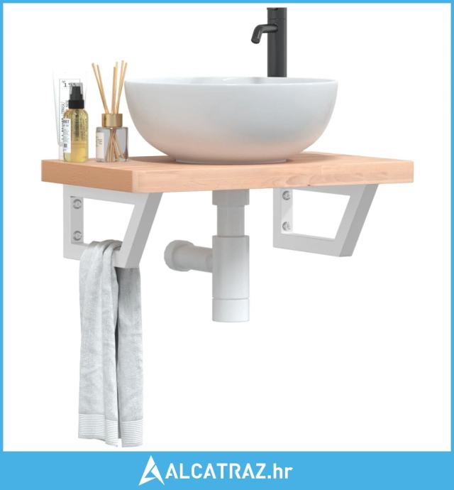 - Čvrsta i dugotrajna: Ova polica za umivaonik kombinirana je s čeličnom strukturom i površinom od masivne bukovine, što je čini čvrstom, stabilnom i dugotrajnom.