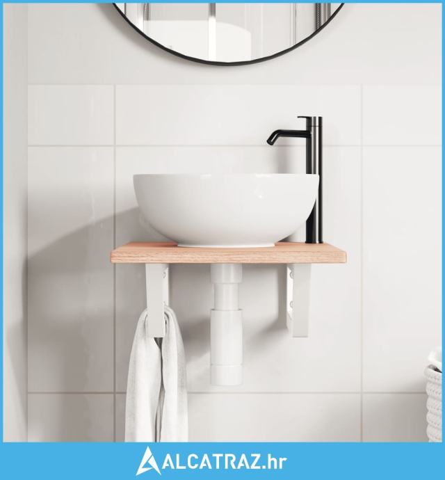 - Čvrsta i dugotrajna: Ova polica za umivaonik kombinirana je s čeličnom strukturom i površinom od masivne hrastovine, što je čini čvrstom, stabilnom i dugotrajnom.