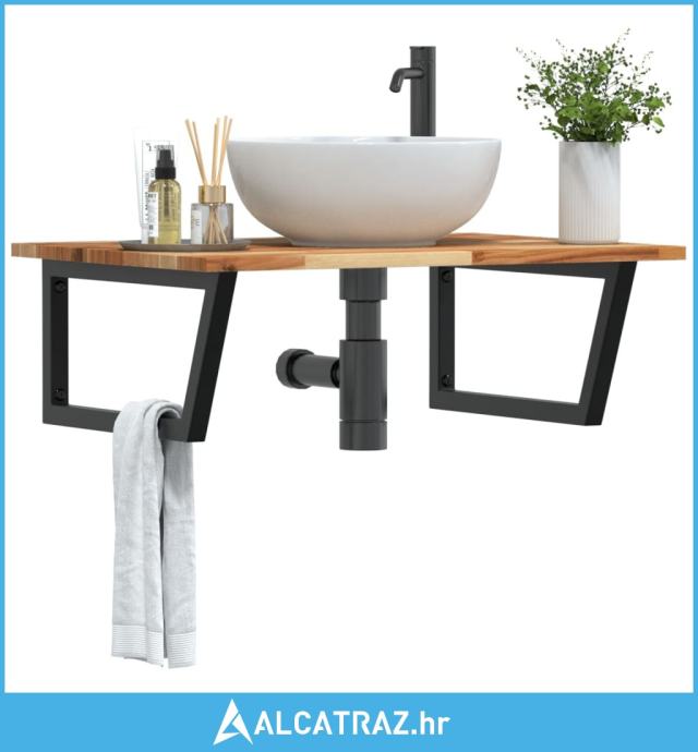 Zidna polica za umivaonik od čelika i masivnog bagremovog drva - NOVO