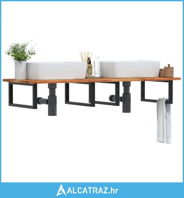 Zidna polica za umivaonik od čelika i masivnog bagremovog drva - NOVO