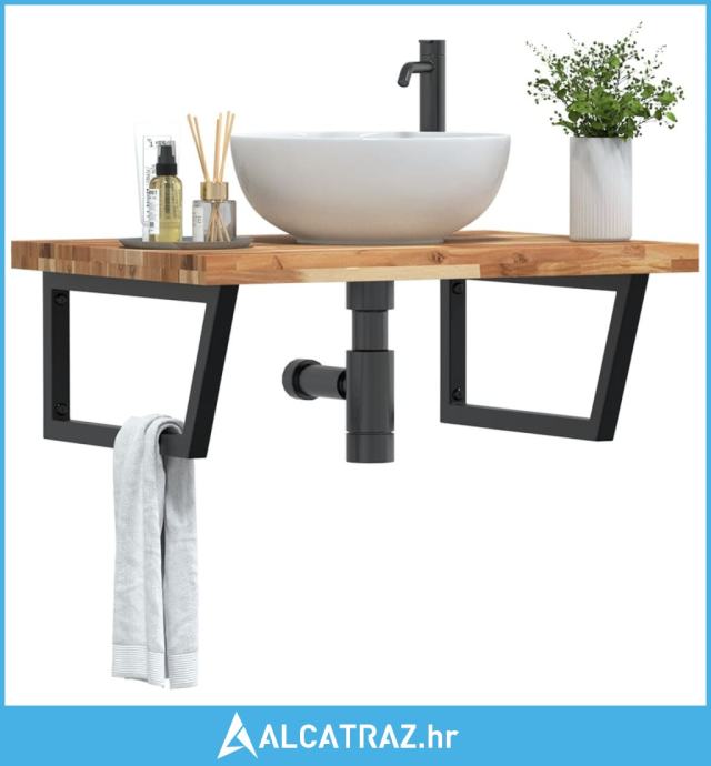 - Čvrsta i dugotrajna: Ova polica za umivaonik kombinirana je s čeličnom strukturom i površinom od masivnog bagremovog drva, što je čini čvrstom, stabilnom i dugotrajnom.