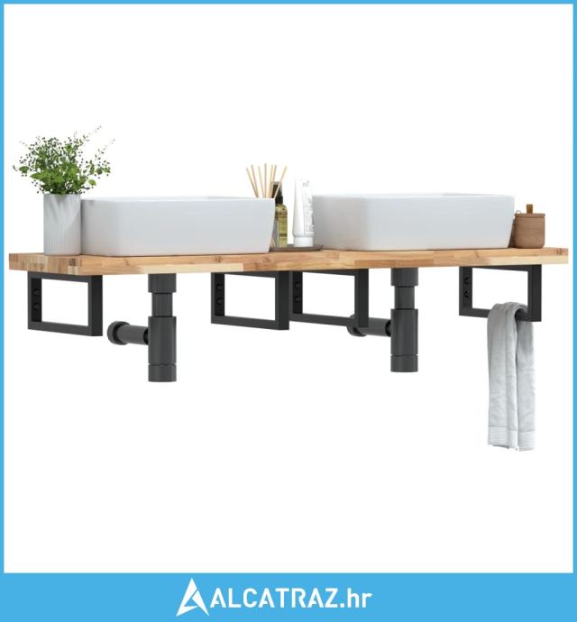 Zidna polica za umivaonik od čelika i masivnog bagremovog drva - NOVO