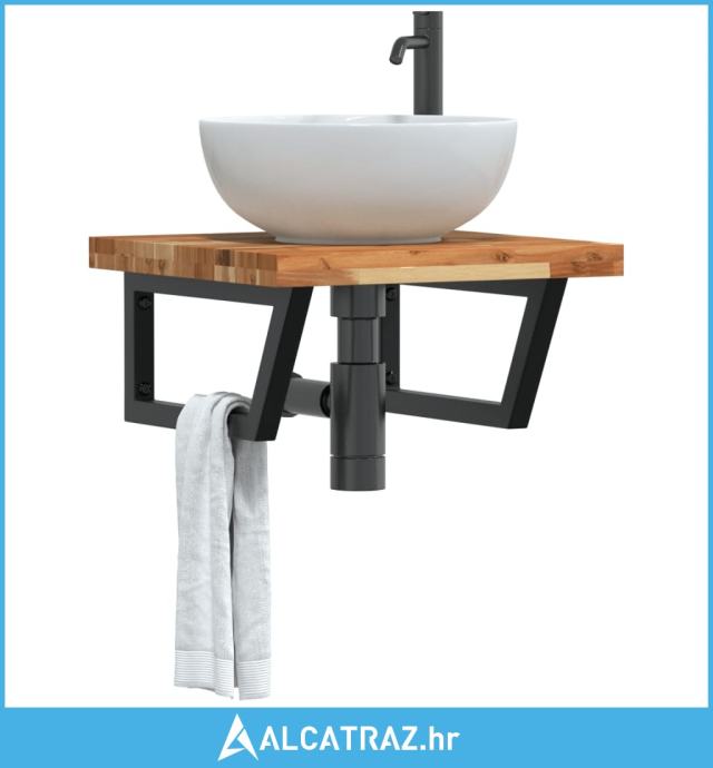Zidna polica za umivaonik od čelika i masivnog bagremovog drva - NOVO