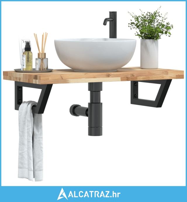 Zidna polica za umivaonik od čelika i masivnog bagremovog drva - NOVO