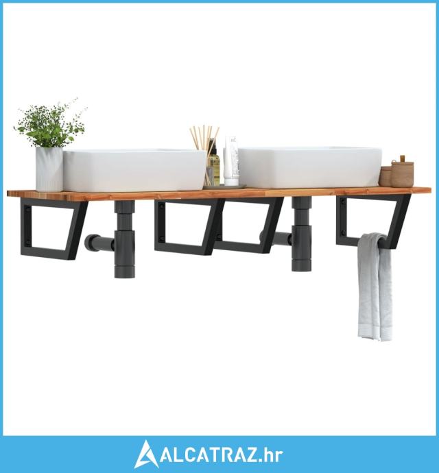 Zidna polica za umivaonik od čelika i masivnog bagremovog drva - NOVO