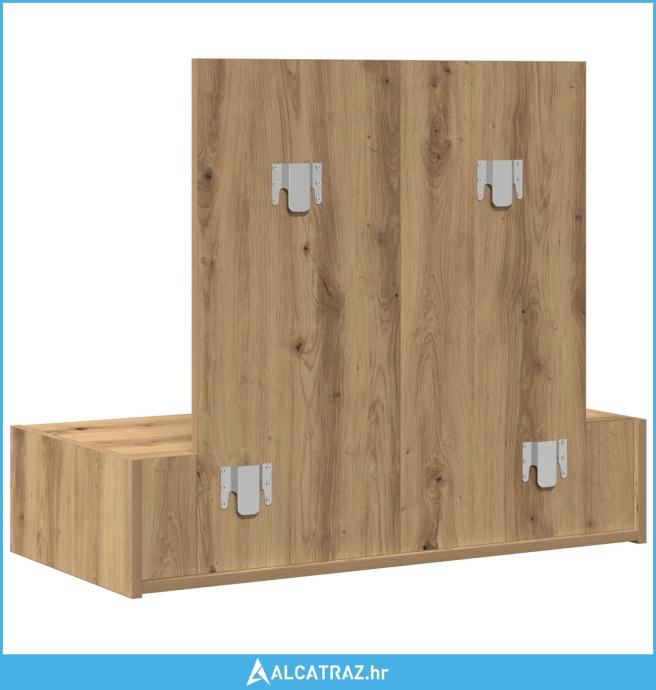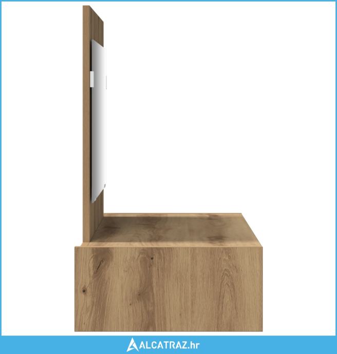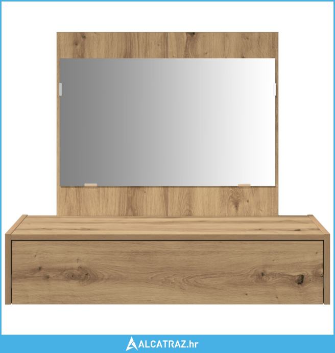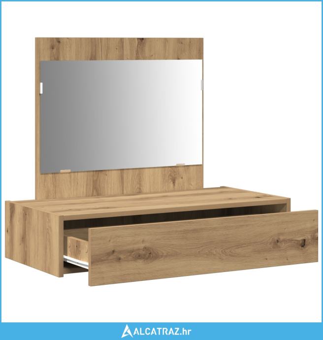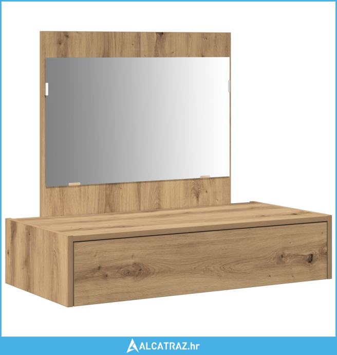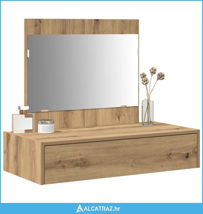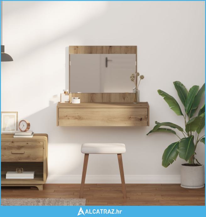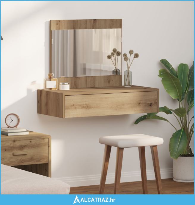 Ovaj zidni toaletni stolić spaja rustikalni šarm s praktičnošću, što ga čini savršenim komadom za svaku modernu spavaću sobu ili prostor za uređivanje. Njegova topla završna obrada od umjetničkog hrasta i lijepe linije donose stil dok pruža sve funkcionalnosti za vašu dnevnu rutinu.