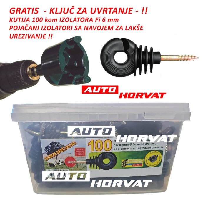 IZOLATOR ZA PASTIR - KUTIJA 100 KOM SA KLJUČEM ! FI 6,0 MM ! LACME !