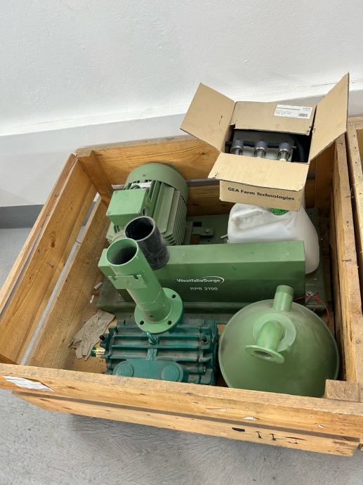 Prodajemo novi muzni stroj GEA Westfalia RPS 2100. Pumpa zapremnine 2100 litara vakuma na 50kPa, elektromotor 5,5kw/380V/50Hz. Kompletna i spremna za isporuku. Cijena + pdv. R1 račun. Nova cijena 4000+pdv
