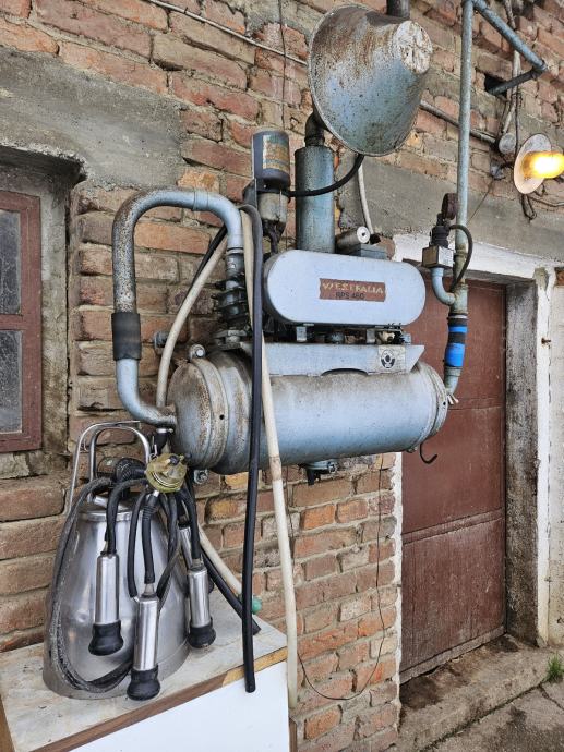 Zbog prestanka proizvodnje mlijeka prodajem korištenu ali potpuno ispravnu garnituru za mužnju krava, garnitura je sastavljena od vakuumske pumpe Westfalia RPS 260 sa monofaznim i trofaznim elektromotorom, 1 Inox kante za mužnju sa skoro novim pulsatorom i 6 metara čelične cijevi za vakuum sa 3 priključka za muznu kantu.