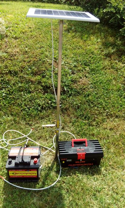 Solarni elekrtični pastir , koji radi cijelu sezonu bez oržavanja . Pokriva 9000m ograde .