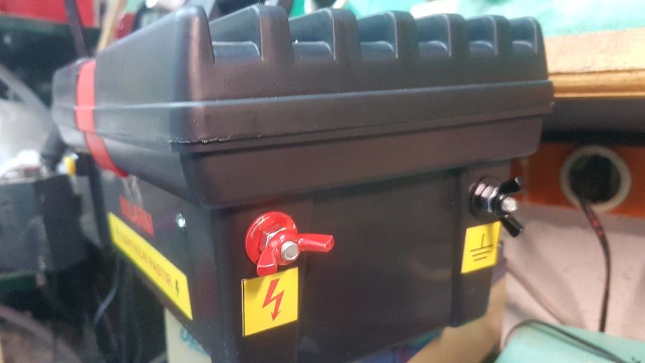 U setu još ima kabal dodatni za eventualno kopčanje večeg akumulatora i adapter , sa kojim pastir može da radi na struju od 220V