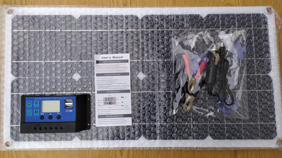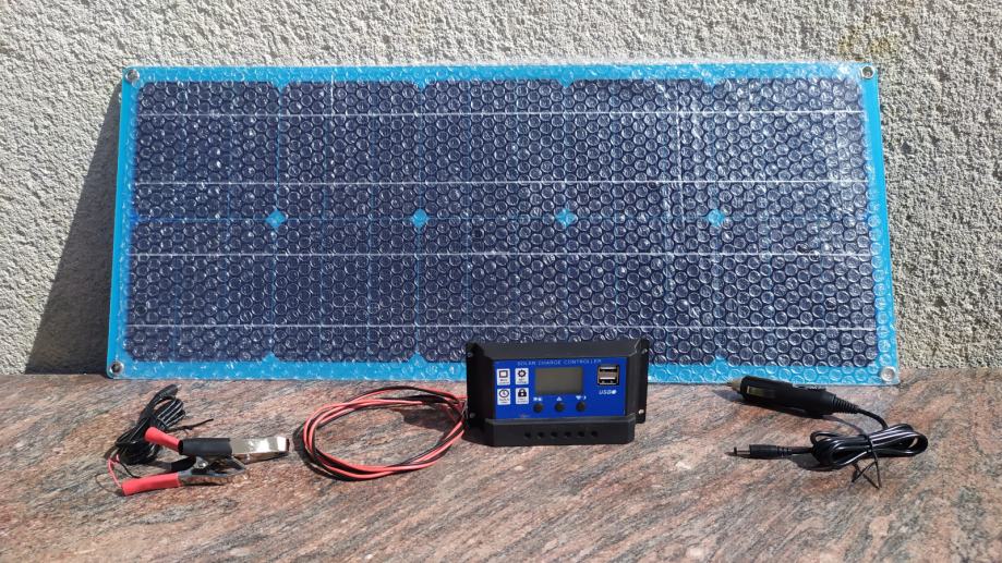 Solarni fleksibilni panel 12V za električe pastire, sa spojnim kablovima.