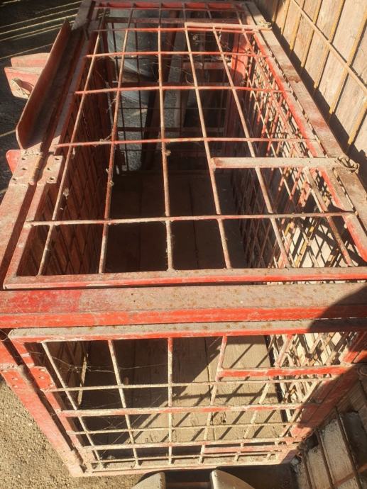 Prodajem traktorsku gajbu za prijevoz svinja. Radi se o metalnoj konstrukciji namijenjenoj pričvršćivanju na traktor, s rešetkastim stranicama i otvarajućim vratima sa strane i odozgo za lakše ukrcavanje i iskrcavanje životinja. Gajba je izrađena od čelika i robusne je gradnje.