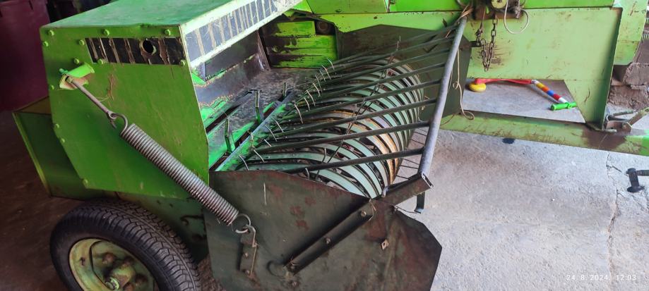 Prodajem visokotlačnu balirku samim pr 132 mala brdska 2 m široka ukupno lagana za male traktore jako brza sto posto ispravna u vlasništvu preko 20 godina na balirki je sve original još tvorničko vezači petljači boja tvornička nije farbana radila za vlastite potrebe razlog prodaje kupnja rolo