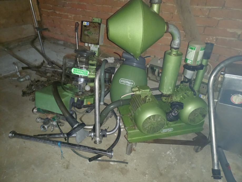 Prodajem Westfalia opremu za mljekare. Oprema se sastoji od zračne pumpe od 700 litara, pumpe 460 litara, sabirnika mlijeka i muzne kante.