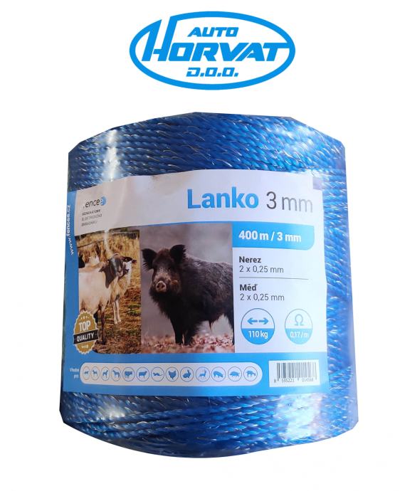 ŽICA ZA ELEKTRIČNOG PASTIRA - FENCEE BLUE 400 met - DEBLJINA 3 mm !