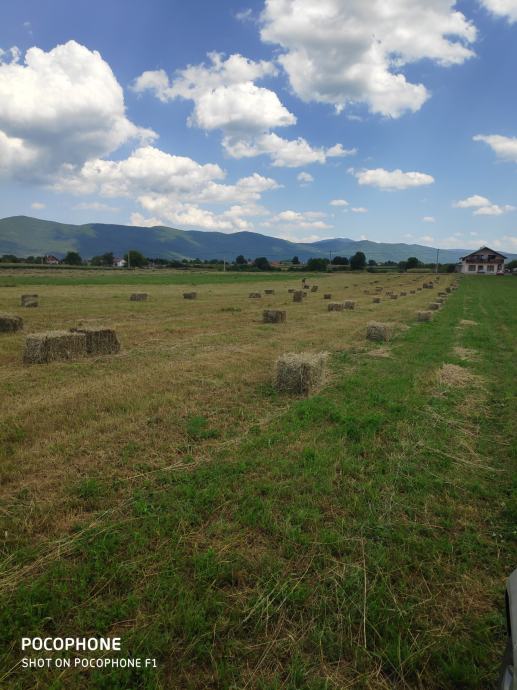 Ovogodišnje sijeno, prvi otkos i otava, kvalitetno, skladišteno u suhom na katu štale. Djetelina, djetelinska smjesa, lucerna, livada. Cijena 2€ po komadu, komad cca 12kg. Bez dostave.