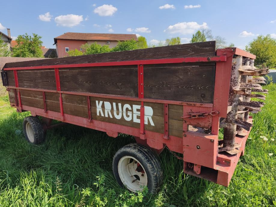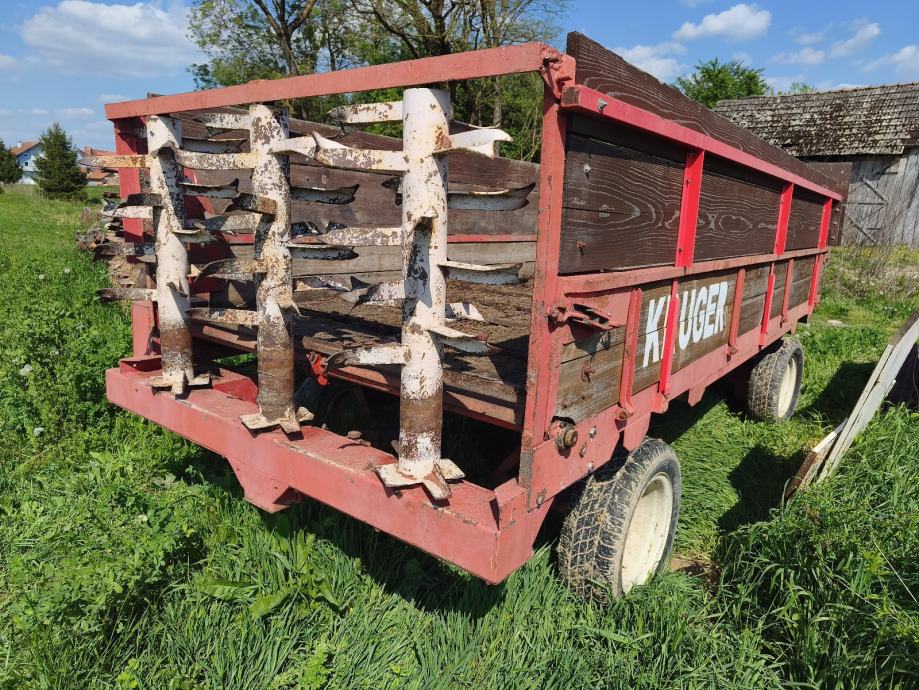 Prikolic za gnoj Kruger , dvije osovine,tri okomita valjka