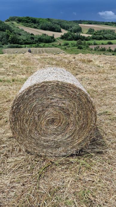 Prodajemo rolo bale eko djetelinsko travne smjese, košnja 2025., bale težine u prosjeku 300 kg, dostupan certifikat ekološke proizvodnje. Dostupno 60 bala. Cijena sa utovarom 25 eura, ako se uzima sve cijena nije fiksna.
