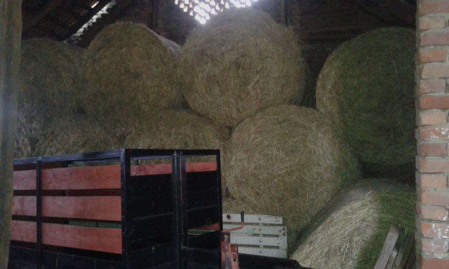 Prodajem 18 rolo bala kvalitetnog poljskog sijena drugi i treći otkos osušeno i uskladišteno bez kiše cijena 150kn, također prodajem10 rolo bala sjenaže prvi otkos cijena 250kn.