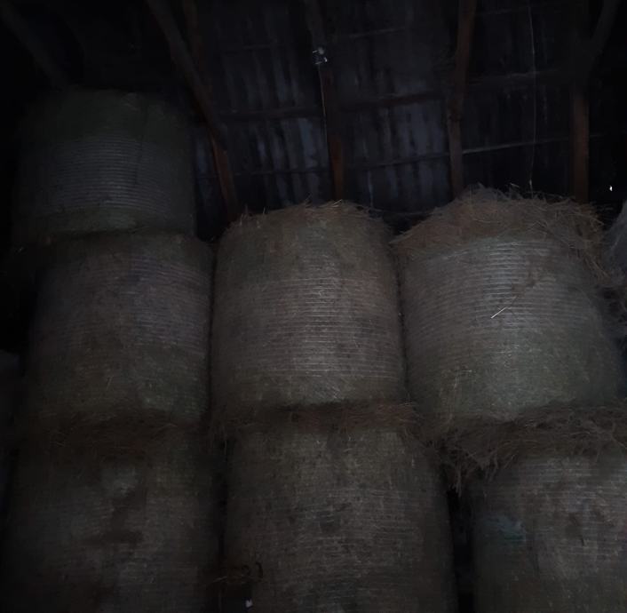 Rolo bale, skladištene na suhom mjestu, nisu pokisle. Mogucnost prijevoza i utovara.