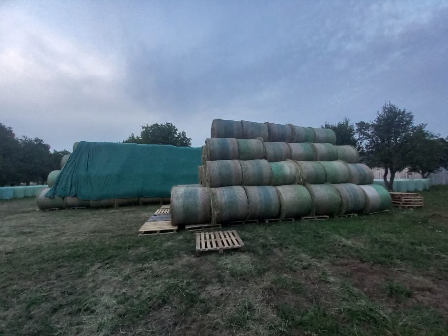 Prodajem cca 200 kom rolo bala suhog sijena (30 € ) cca 100 kom rolo bala sjenaze čista lucerna 2 i 3 otkos 55 € . Bale su velicine 125x125, omotane mrežicom, skladisteno nije pokislo.
