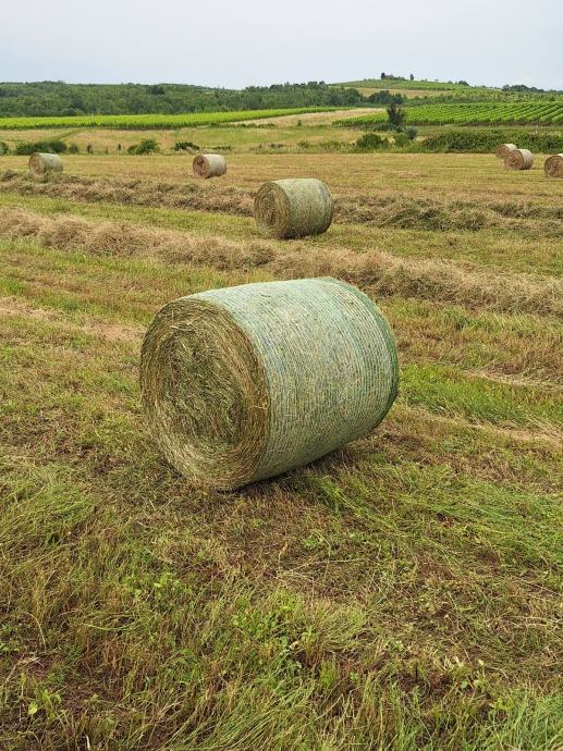 Prodajem balirano sijeno okrugle bale 120x120, 1 otkos 2024, težine cca 250kg. Pokriveno i skladišteno