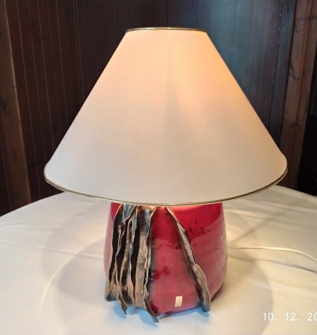 Prodajem masivnu keramičku stolnu lampu modernog dizajna, umjetnički rad - unikat. U ispravnom je stanju. Pogodno za veći dnevni boravak modernog dizajna.