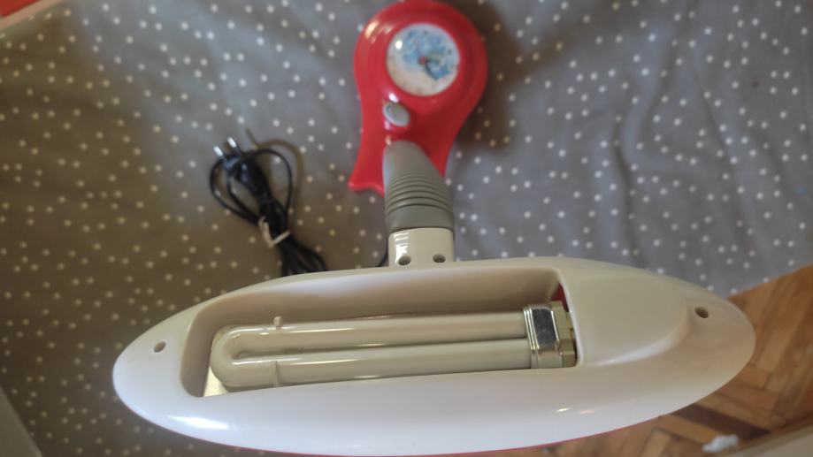 Može samostalno stajati na stolu ili biti na rubu stola fiksirana hvataljkom.