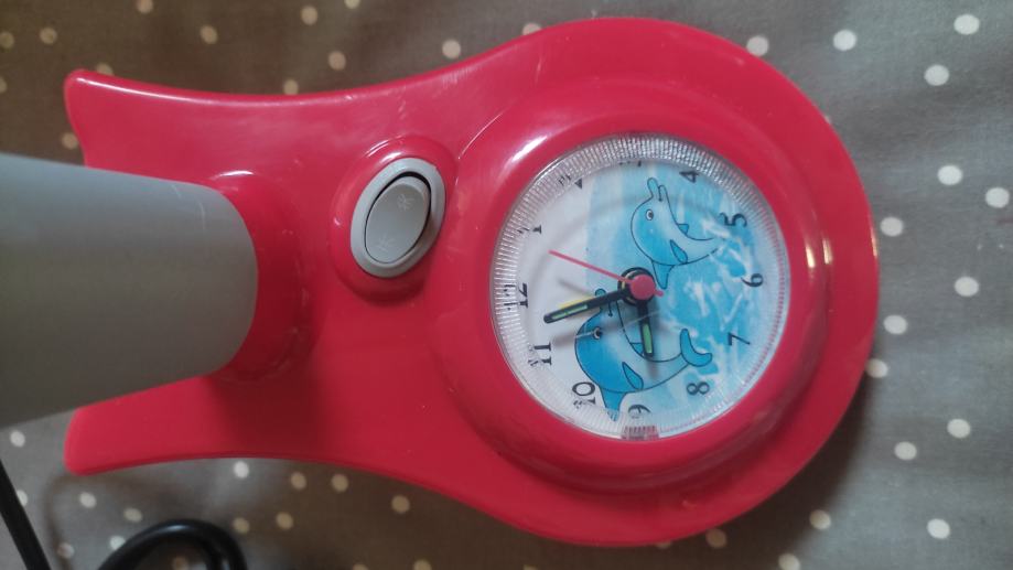Stolna lampa sa hvataljkom i satom na delfine. Baterija za sat.