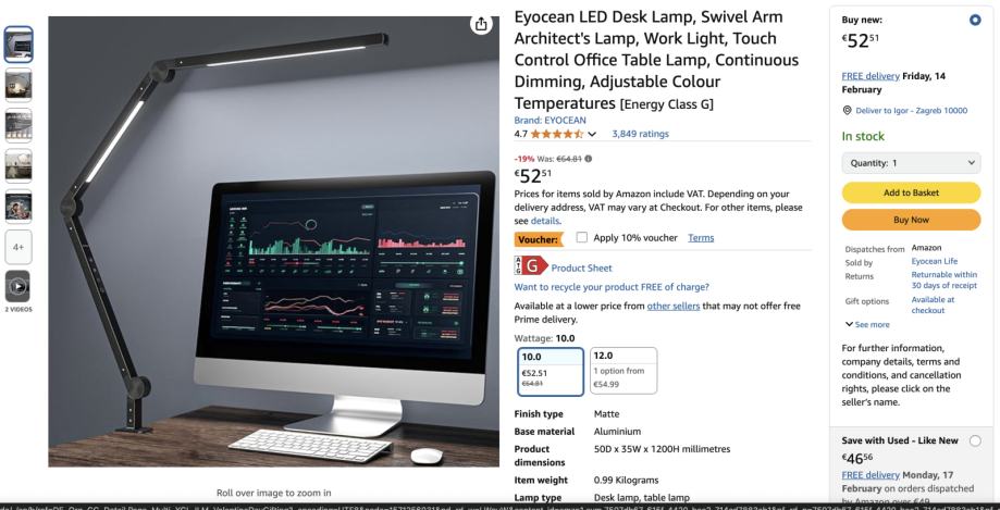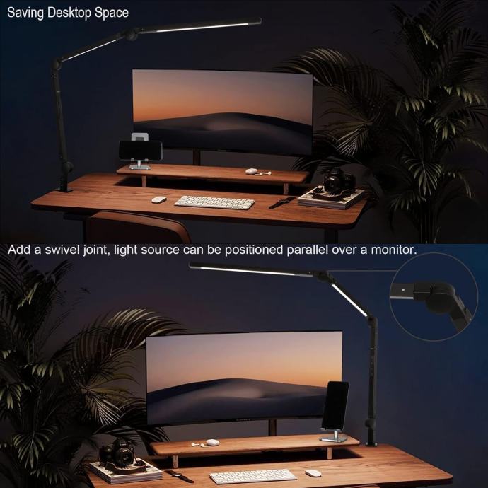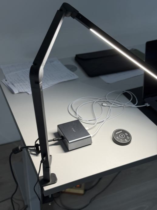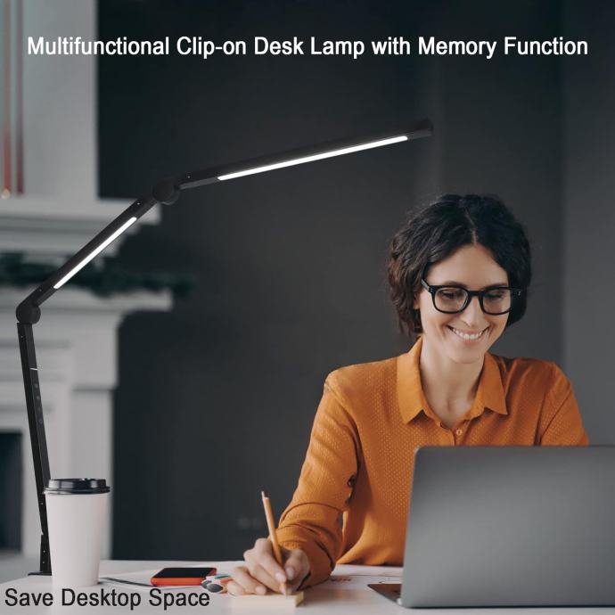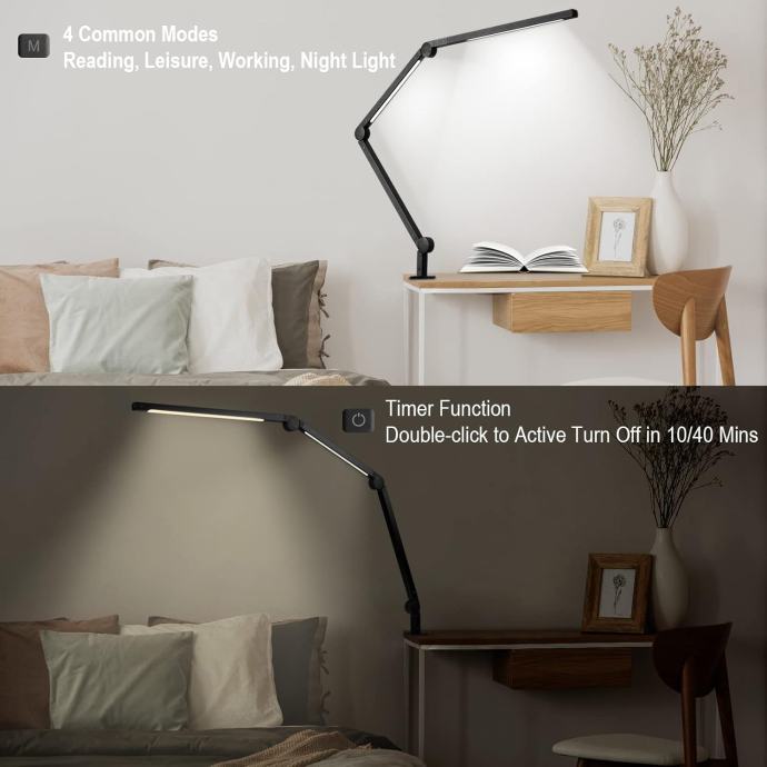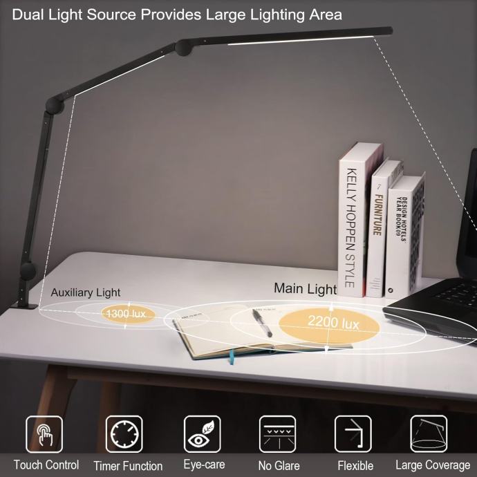 Ova lampa je izvrsno ocijenjena na Amazonu i u odličnom je estetskom i funkcionalnom stanju. Nudi prilagodljivo osvjetljenje s mogućnostima podešavanja svjetline i temperature boje, čime omogućava optimalne uvjete za rad, čitanje ili opuštanje. Posjeduje nekoliko postavki svjetla, uključujući toplo, hladno i neutralno svjetlo, te tehnologiju za zaštitu očiju, smanjujući naprezanje pri dugotrajnom korištenju. Dizajnirana je za uštedu energije i dugotrajan rad.