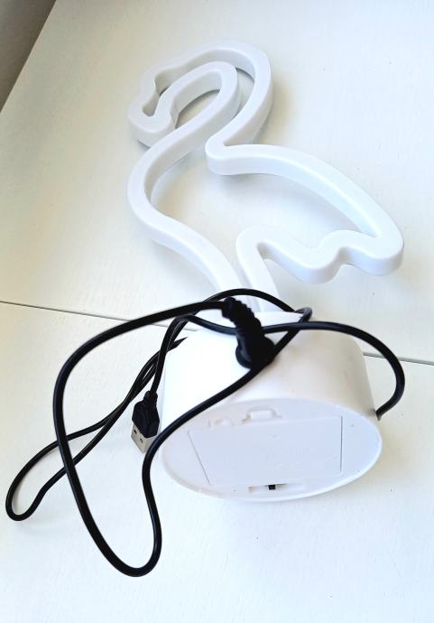FLAMAIZING LED Flamingo svetiljka stolna lampa i kabel. Roza- bijelo svjetlo. USB priključak na struju ili na tri male AAA baterije u postolju bezžično.
