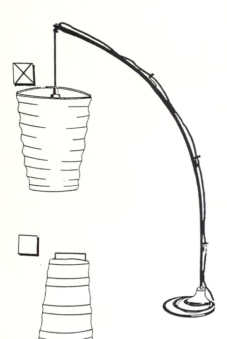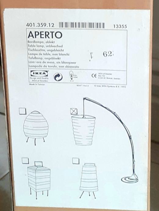 Neraspakirana lampa. Crni metal i širm od rižinog papira...