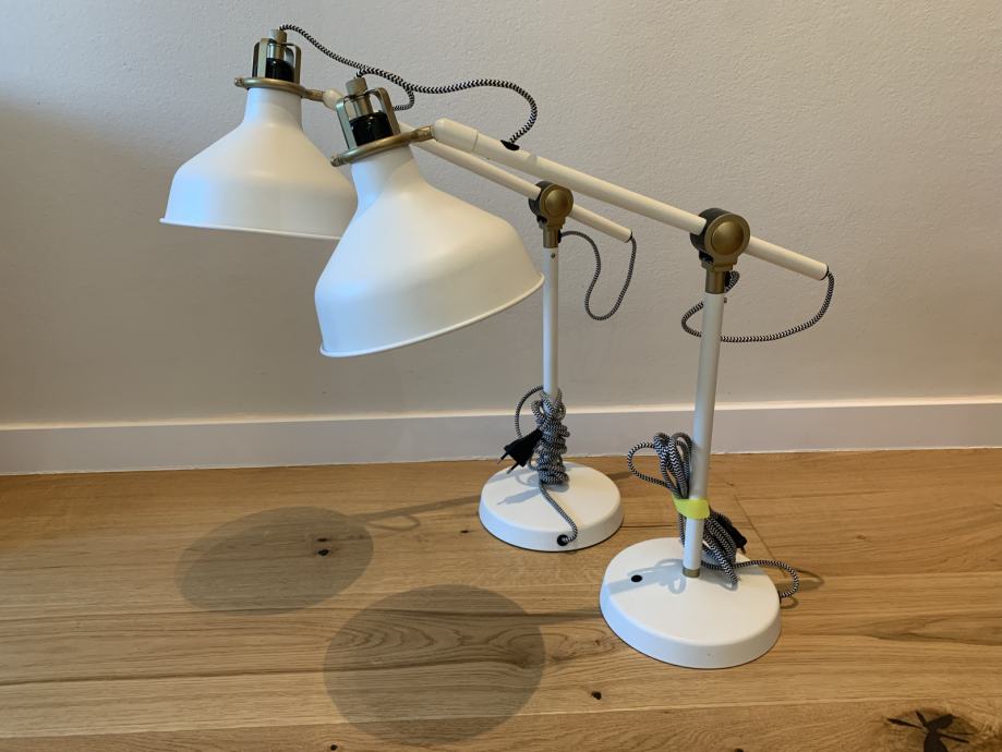 Stolna svjetiljka, daje usmjereno svjetlo, poluga i glava svjetiljke su podesive.