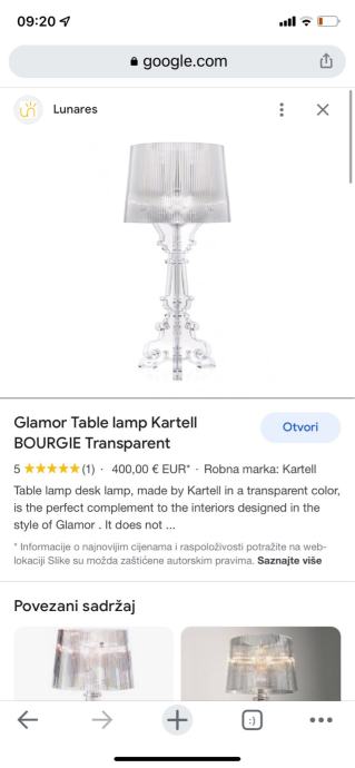Prodajem original Kartel lampu kao nova ali ona nikada ne izlazi iz mode bez ostecenja prikazujem i sliku trenutne cijene na trzistu, lampa ima rezervne dijelove tj.krace nosace tako da lampa moze biti montirana i nize