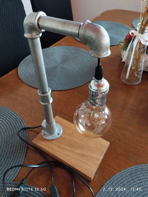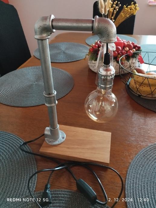 Prodajem lampu od cijevi, lampa je premazana za bezbojnim lakom. Postolje je od hrasta .