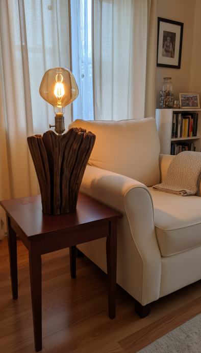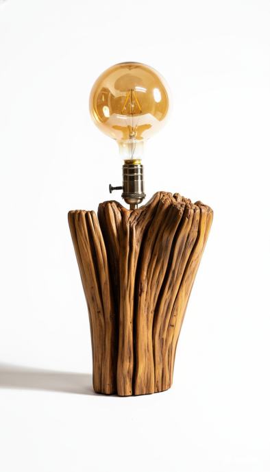 Lampa napravljena od starog hrastovog panja. Panj je očišćen od nametnika i zaštičen uljem za drvo. Ugrađena je Molnart LED Vintage žarulja. Strujni kabel je tekstilni, frkani dužine 2 m.
