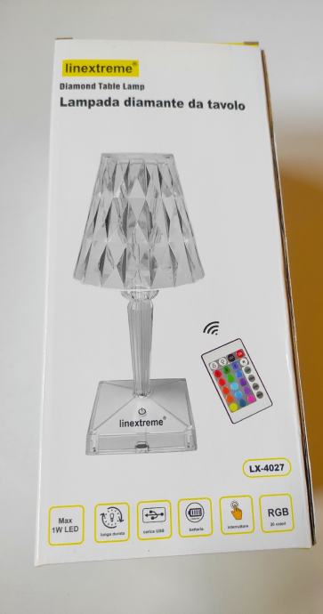 Led lampa koja mijenja boje. Puni se preko usba. Uključuje se pomoću tipke ili daljinskog. Preuzimanje osobno na Trešnjevci ili šaljem poštom