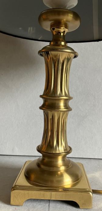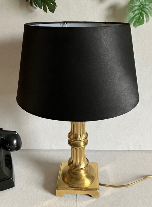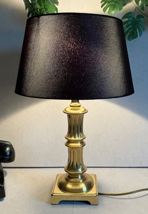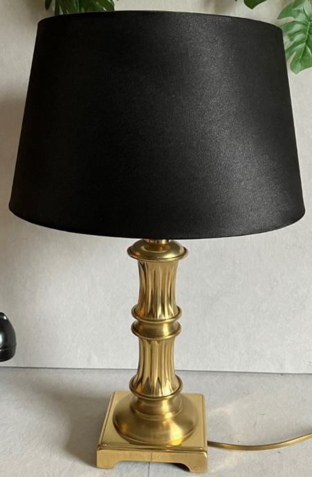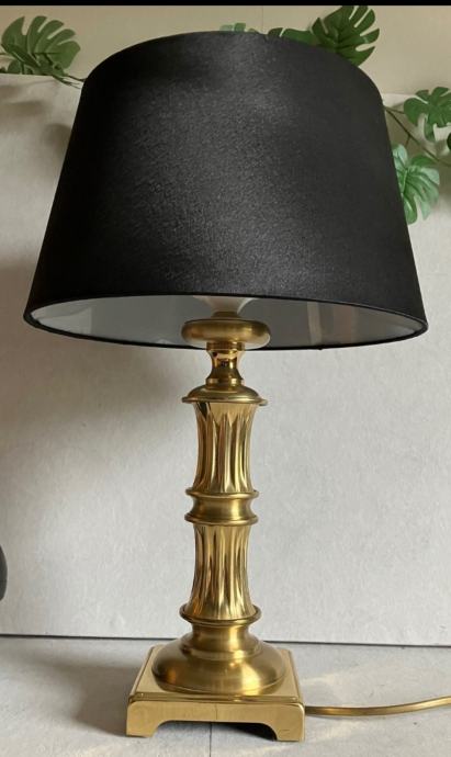 Prodajem stolnu lampu Light&living lampu od čistog mesinga, dolazi iz Njemačke 1970g, znači mesing i crno sjenilo od tkanine. Svjetiljka se sastoji od četvrtastog utegnutog postolja s okruglim stupom. Svjetiljka radi preko prekidača koji je na kabelu.. sjenilo crno koje paše s zlatnom bojom stupa. Dimenzije 45x30,promjer sjenila 30 cm, baza je 12x12.Lampa je u savršenom stanju s manjim znakovima starenja. Dostava Zagreb i Zagrebačka županija besplatna kao i poštom po cijeloj Hrvatskoj uključena u cijenu.