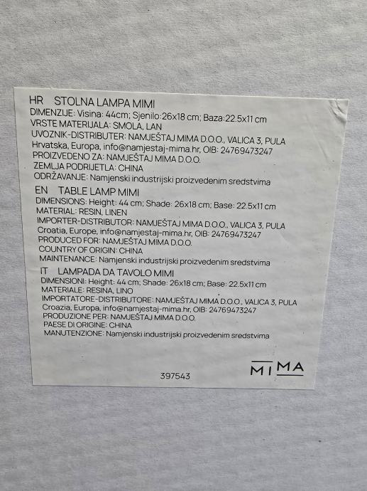 Noćna lampama. Nova i nekorištena,zapakirana,kupljena u Mima namještaj. Plaćena 52€. Prodajem za 20€ / komad. Cijena za obadvije 40€. Dostupno 2 komada.