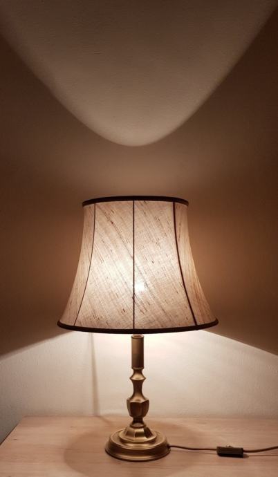 Prodajem stolnu lampu Paul Neuhaus Njemačka vintage stolna lampa iz 1970g. Sastoji se od mesinganog stupa koji ima lijepu patinu i lanenog sjenila. Visina mu je 55cm, sjenilo ima promjer 35-40cm,a postolje promjer 15cm,ima grlo E27 za max 100w.Kabel za napajanje je s prekidačem. Svjetiljka je u savršenom vintage rasvjetnom stanju, potpuno originalana i funkcionalna. Dostava Zagreb i Zagrebačka županija besplatna kao i poštom po cijeloj Hrvatskoj uključena u cijenu.